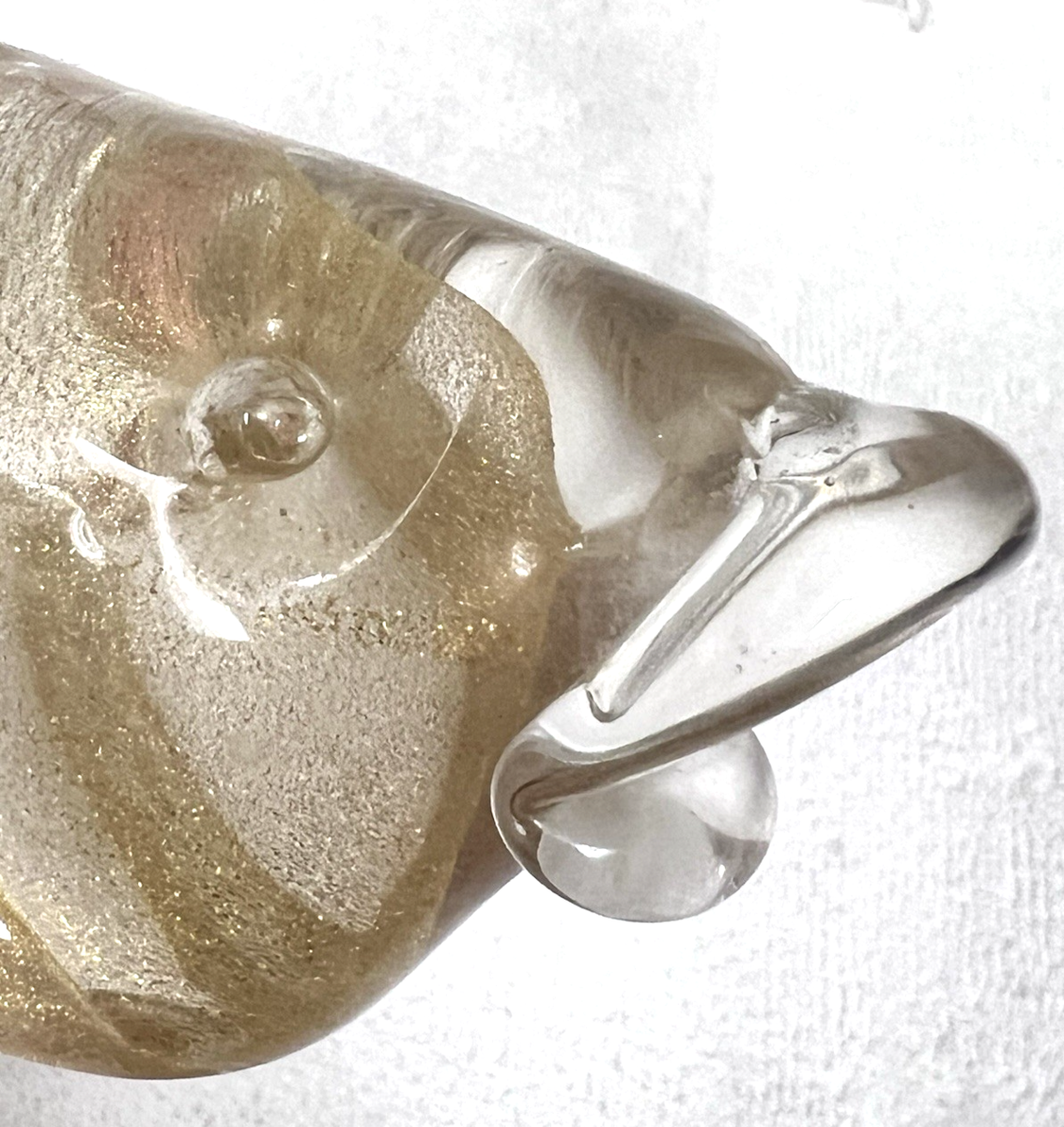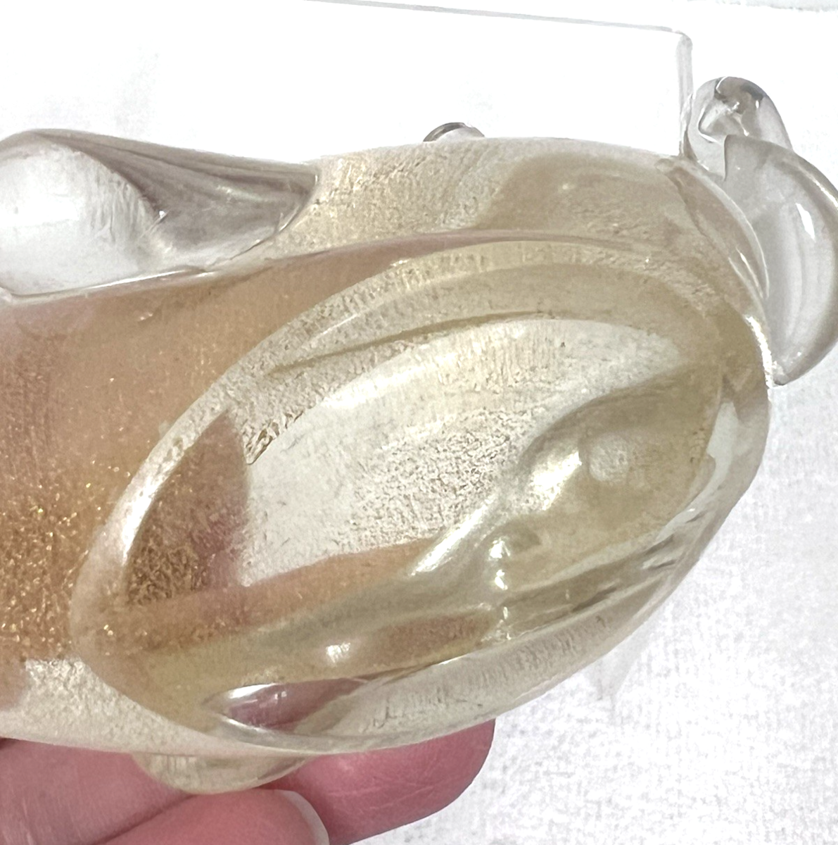 Vintage Murano Italian Clear Art Glass Gold Specks Inside Whale Figurine 4"