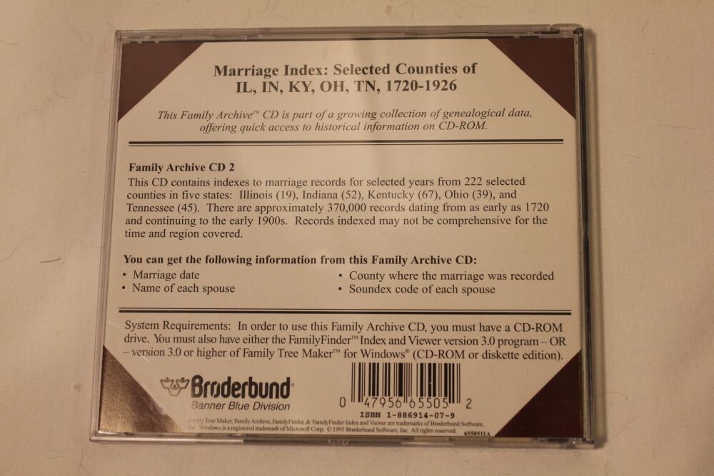 Family Tree Maker CD# 2: Marriage Index: IL, IN, KY, OH, TN 1720-1926