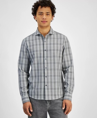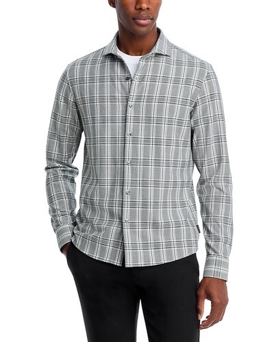 Michael Kors Men's Slim-Fit Stretch Prince of Wales Check Shirt Black-Large