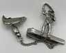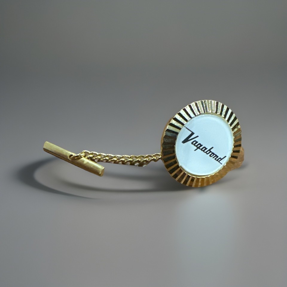 Vintage Vagabond Square Tie Tack Pin Gold Toned with Bar Chain USA