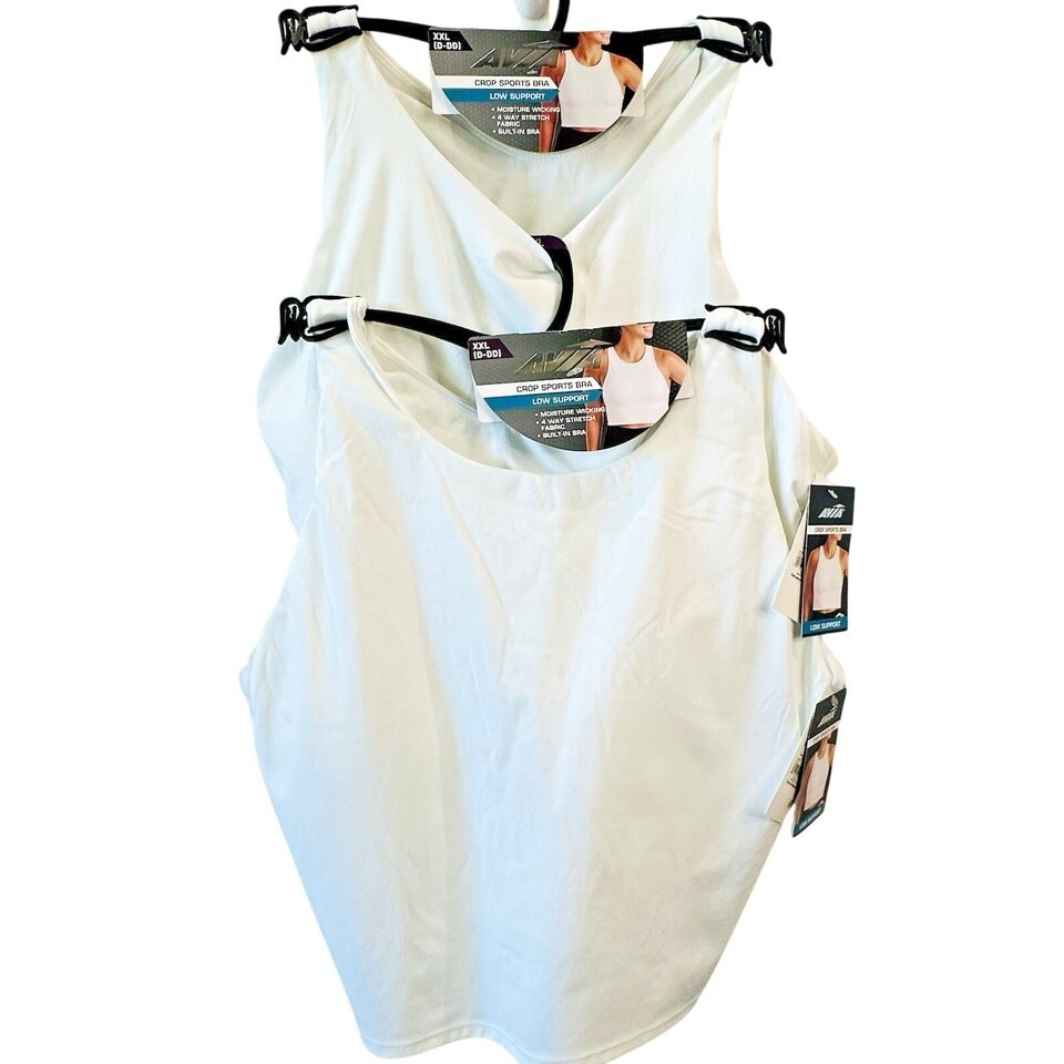 2-Avia Low Support Trainer Crop Sports Bra Women XXL D-DD White Nylon Pullover