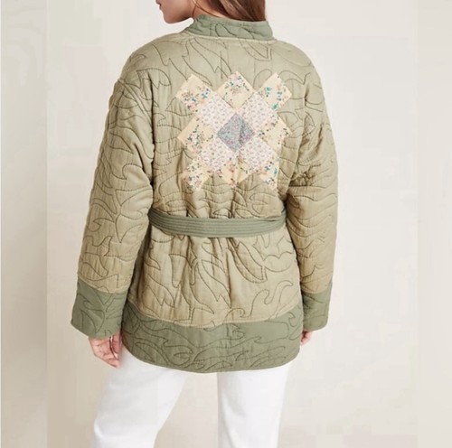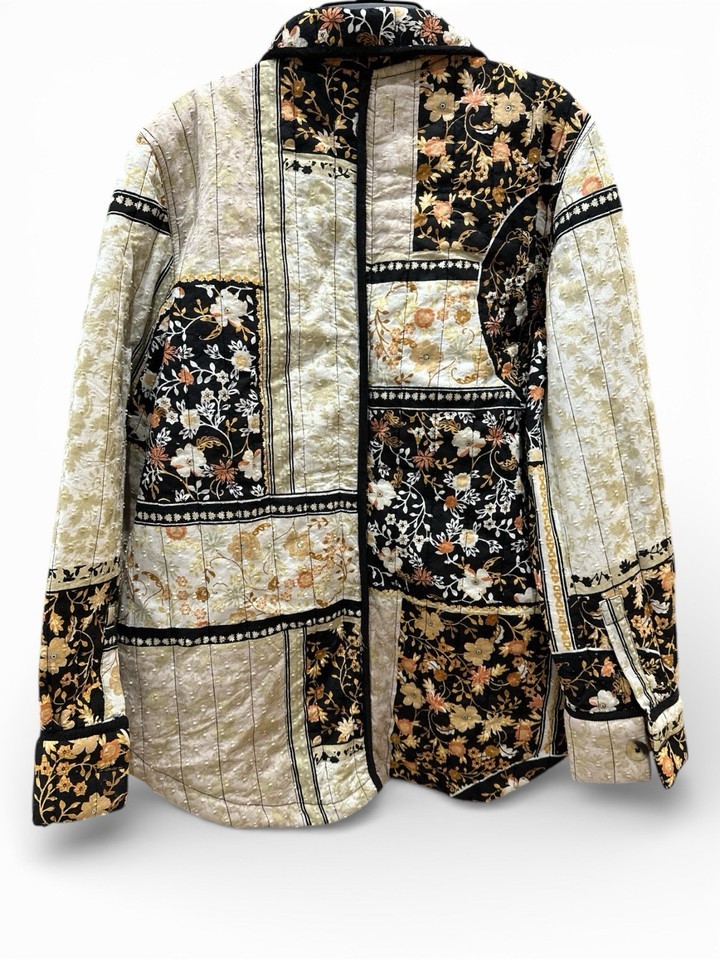 Anthropologie SZ Medium Quilted Shirt Patchwork Jacket Women Floral Shacket NEW