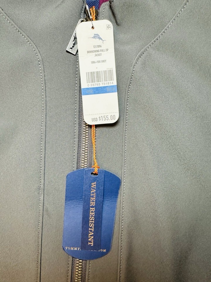 Tommy Bahama Jacket Mens XL Gray Downswing Zip Water Resistant Softshell NEW