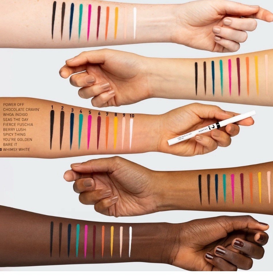 Infused with vitamin E, jojoba oil, and rose oil, the clean, vegan, and cruelty-free formula nourishes skin while delivering intense pigment. A built-in sharpener allows for precision application everywhere you go.