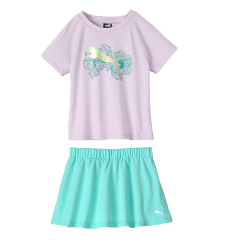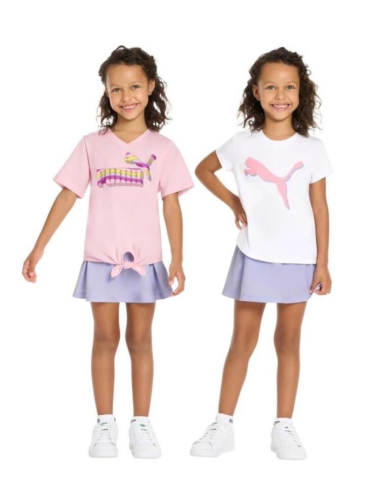 PUMA Kid Girls' 3-piece Active Set Size 5 Pink Purple Two T-Shirts Skort NEW