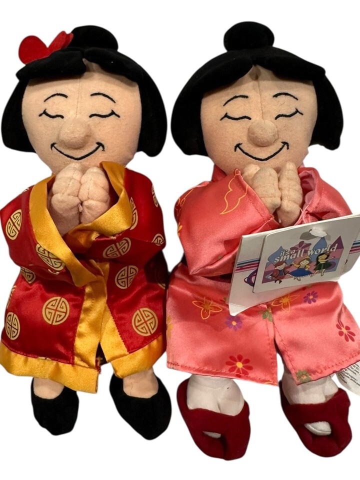 This lot of 2 mini bean bag beanie toys from Disney Parks features characters from "It's A Small World" - Japan and China. These small-sized plush toys are part of the Disney brand. The toys are made in China and have not been modified. Perfect for young Disney fans looking to collect adorable stuffed animals from around the world.