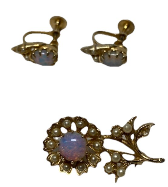 Vintage Opal Earrings and Brooch Set
