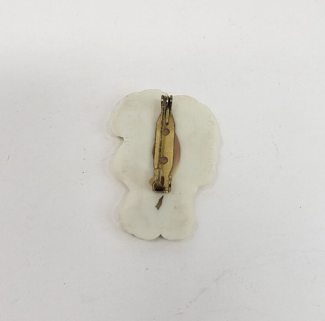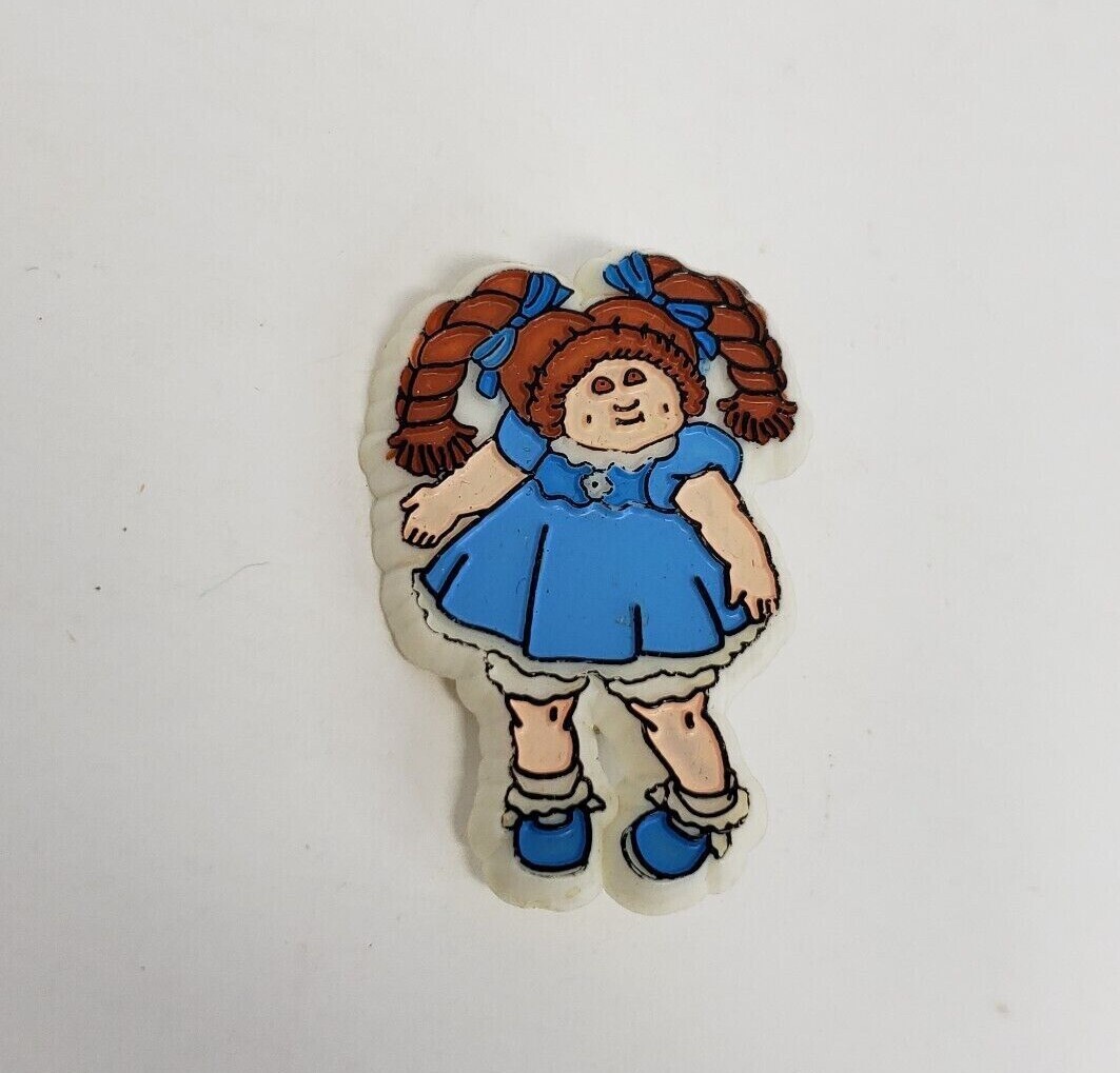 VINTAGE 1983 CABBAGE PATCH KIDS GIRL DOLL BROWN HAIR BLUE DRESS PLASTIC PIN