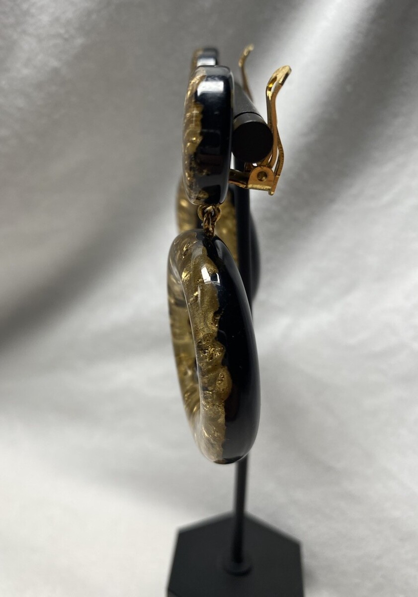 Vintage Resin Circles Clip On Earrings Embedded w/ Gold Material Made in Italy