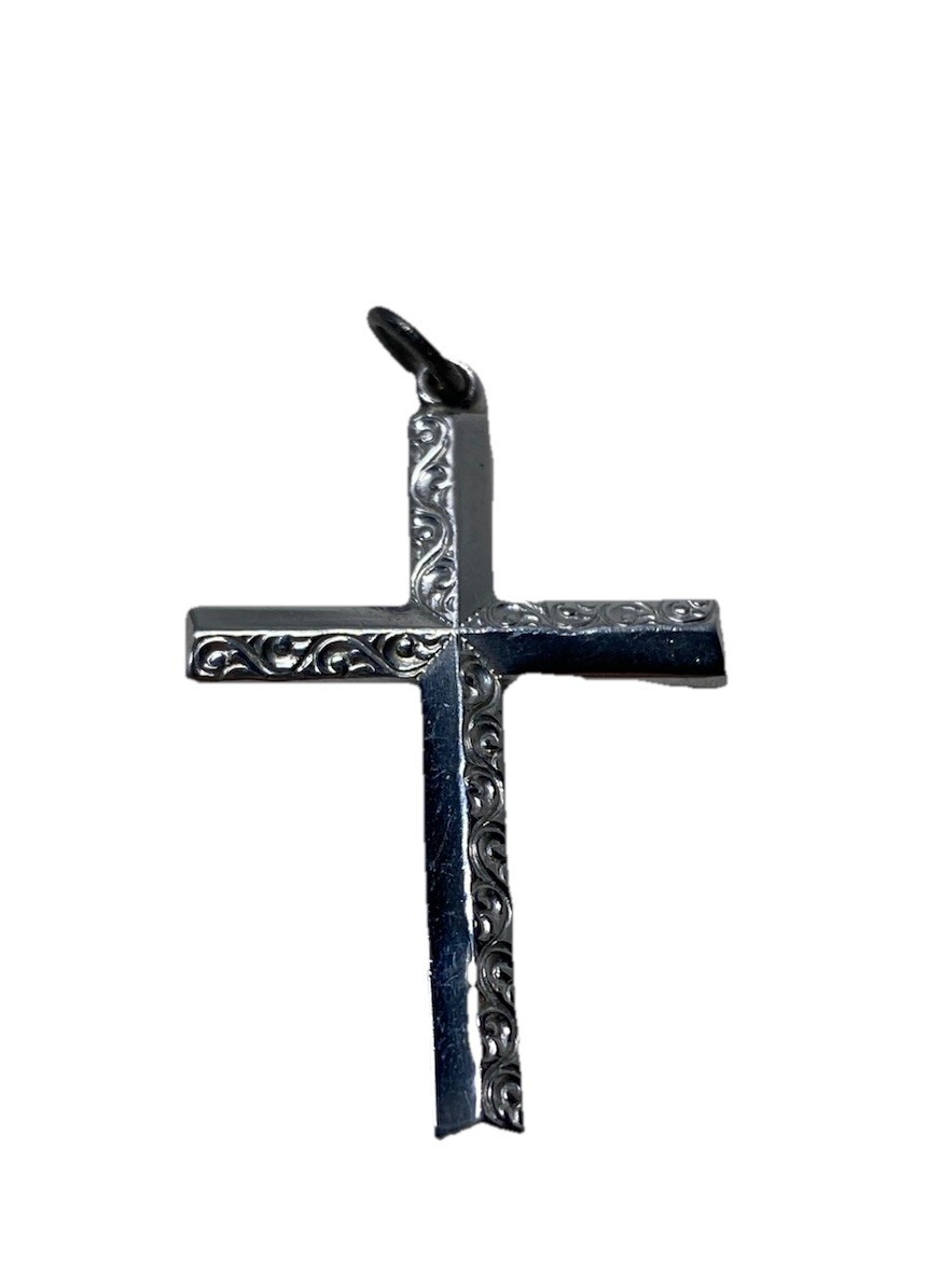 Vintage Etched Silvertone Hoop Earrings Lot of 2 Sets + Cross Pendant