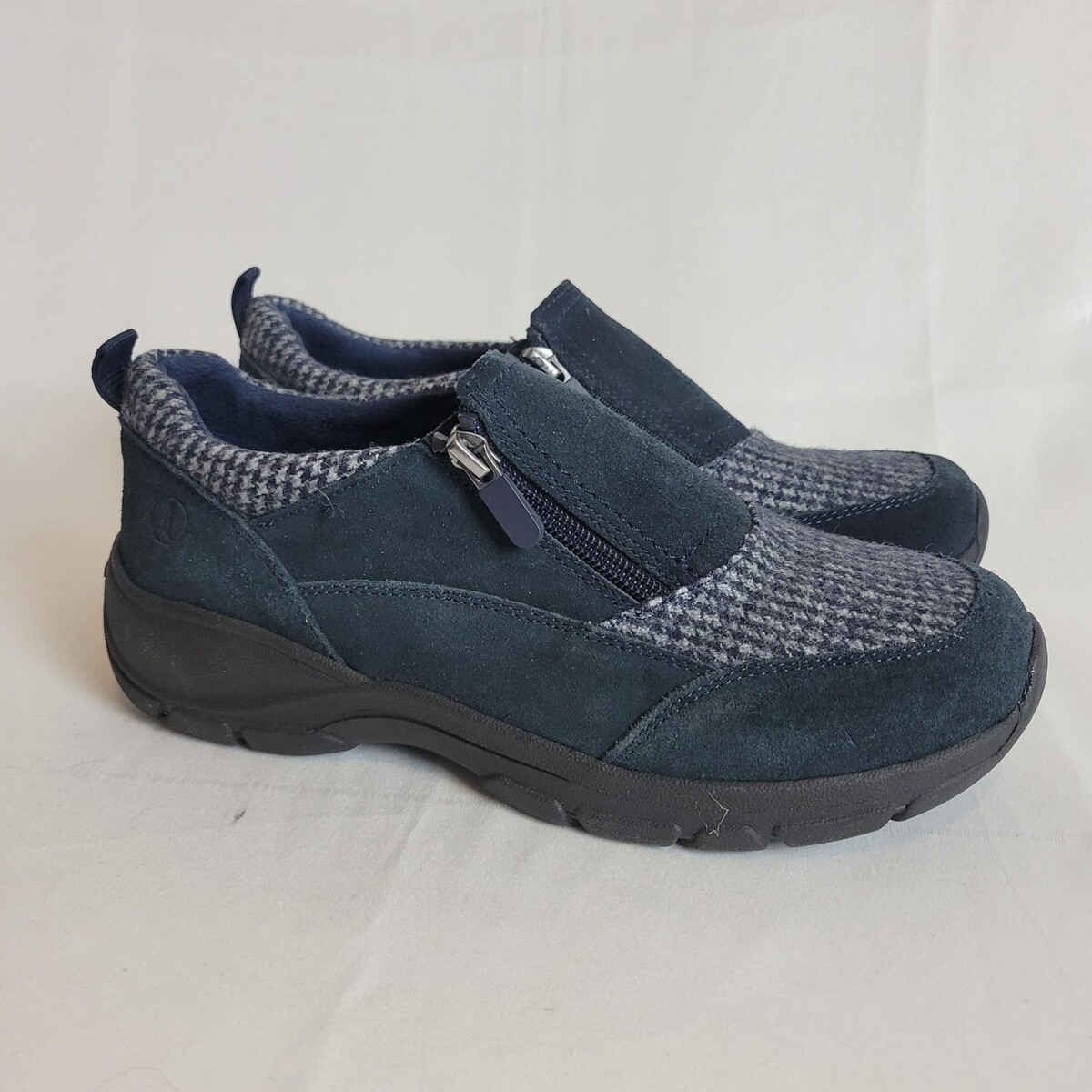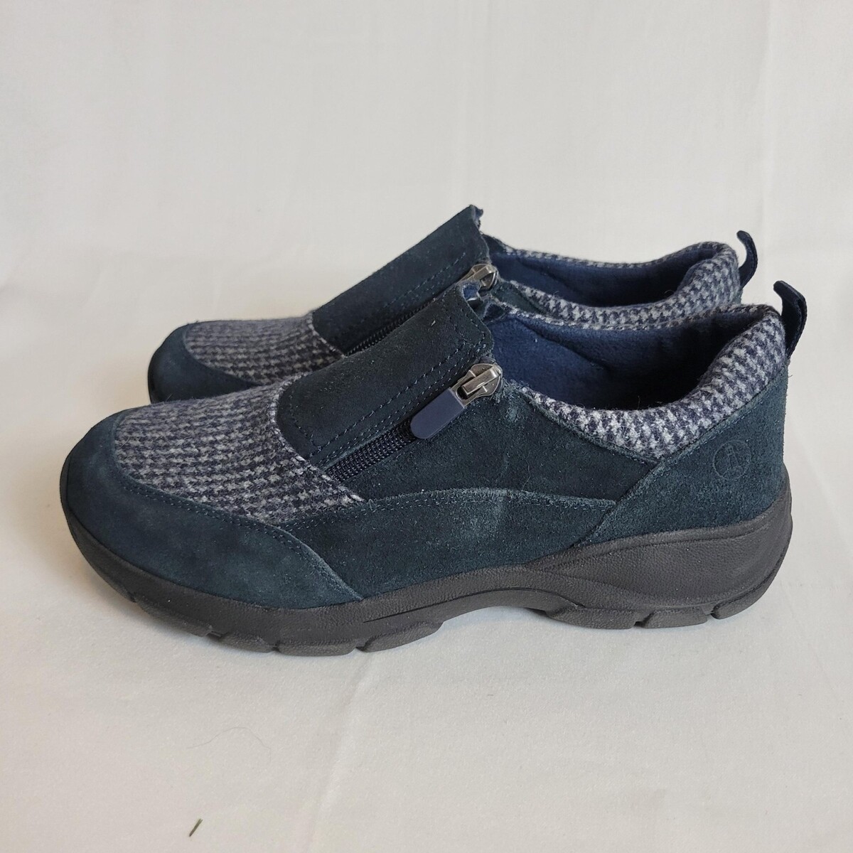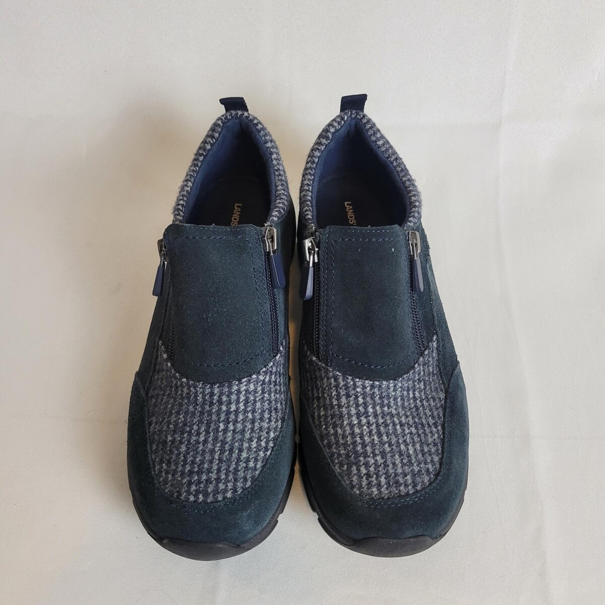 Lands' End All Weather Insulated Suede Zip Moc Shoes Women's US 8.5 M Navy EUC