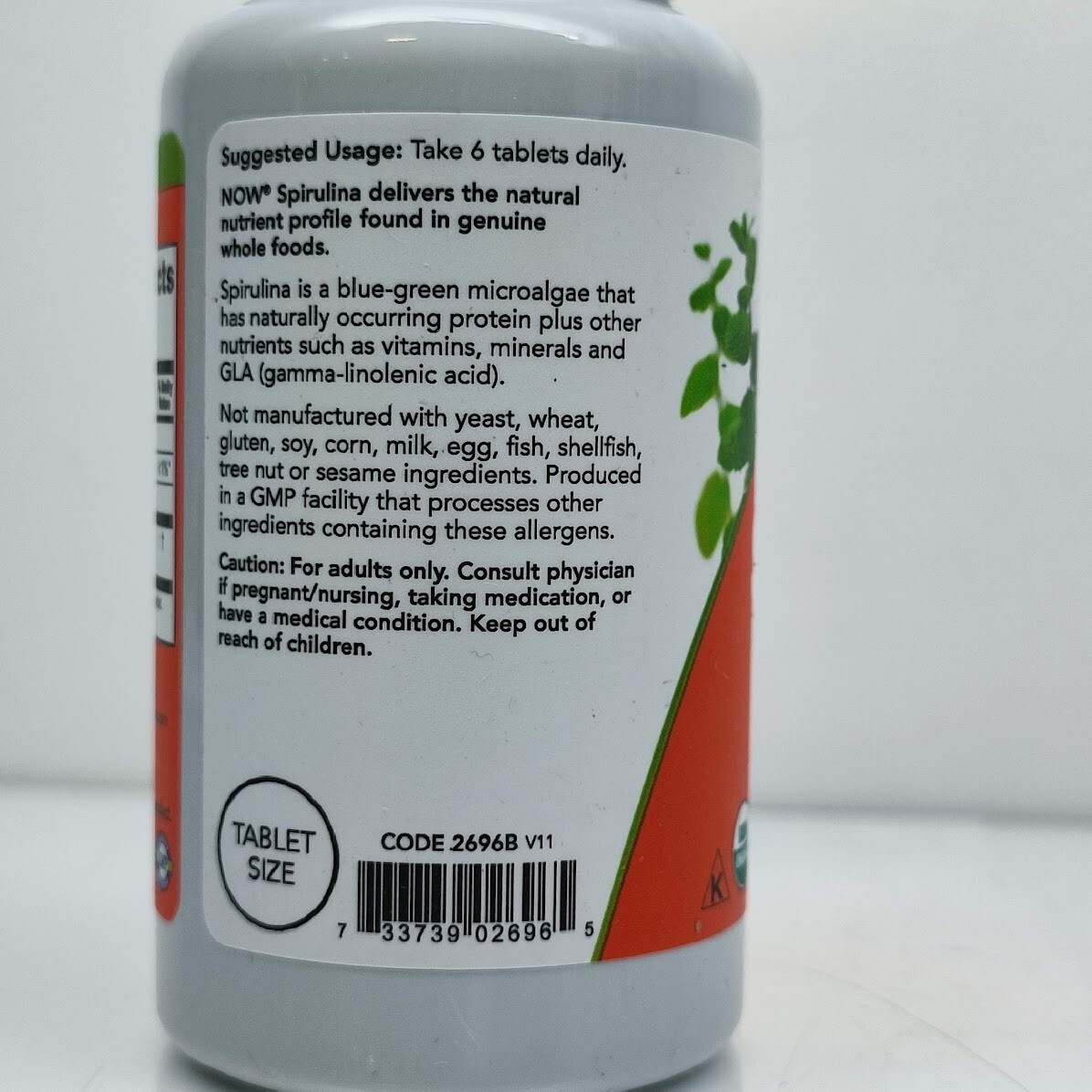Organic Spirulina NOW Foods Certified 500 mg Organic 100 Tab Best Before 08/2026