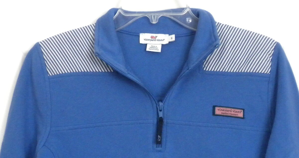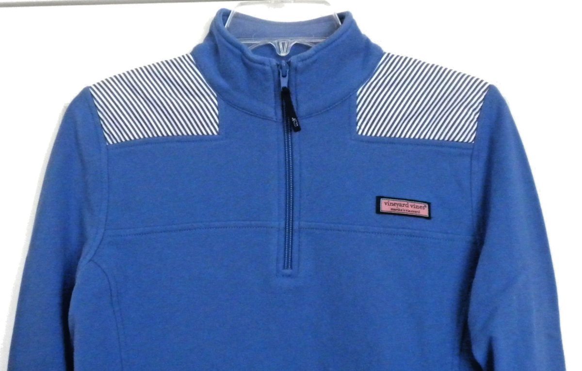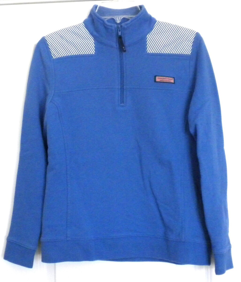 Pre-owned Women?s Vineyard Vines 1/4 Zip Classic Shep Shirt Royal Blue with Stripe Searsucker Shoulders