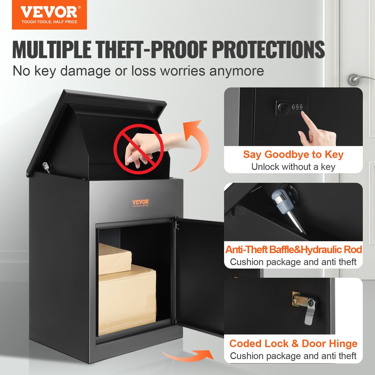 VEVOR Package Delivery Boxes for Outside, Extra Large Mailbox with Coded Lock