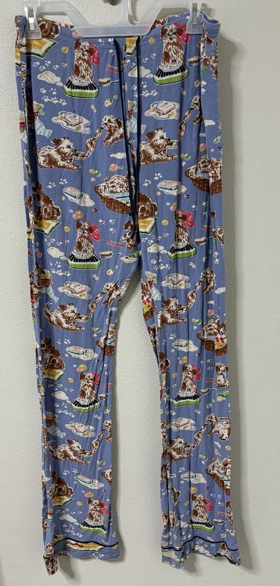 Nick & Nora Pajama Pants S Stretchy Blue Puppy Bubble Bath Time Sleepwear Knit
