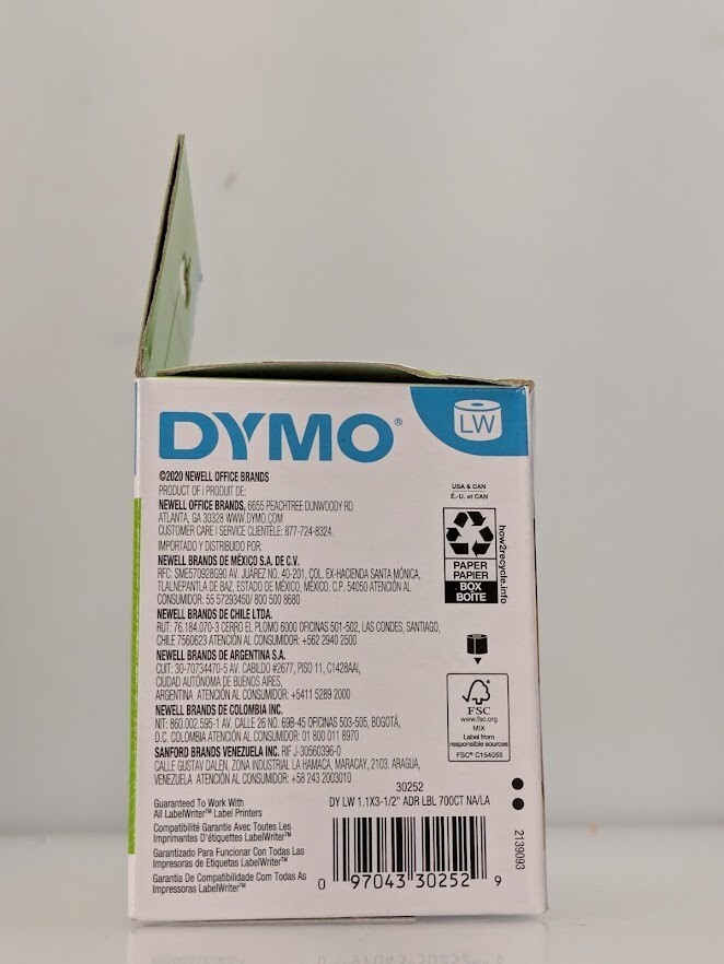 Dymo White Address Labels 30252 - 1 1/8” x 3 1/2” 2 Rolls of 350 (700 Labels)
