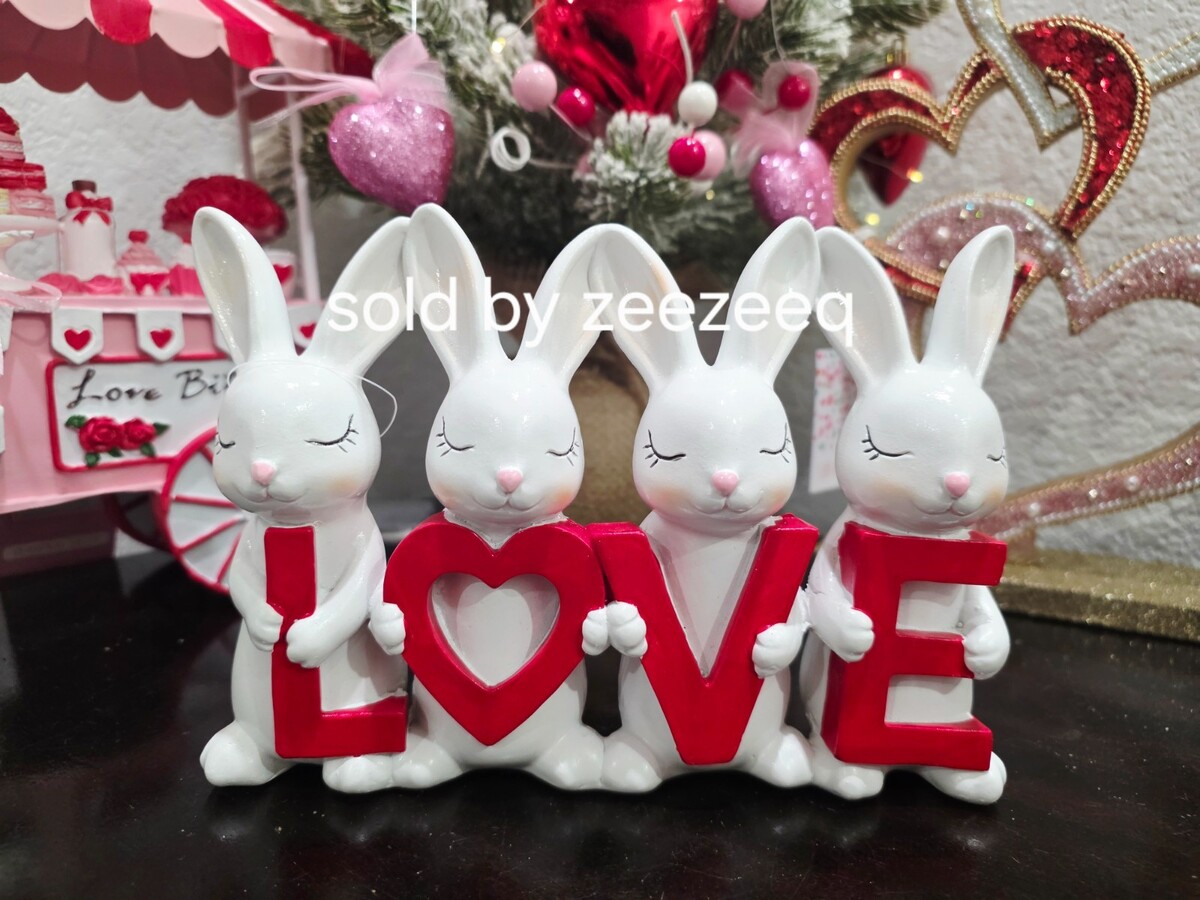 Up for sale we have this adorable bunny rabbit figurine for your Valentines Day decor (perfect for Easter too). The bunnies are sooo cute! Each one is holding a letter that spells out Love. Made of resin it stands approx 5.5" tall x 7.5" wide. Soooo cute!! Background items are available in my store. NEW