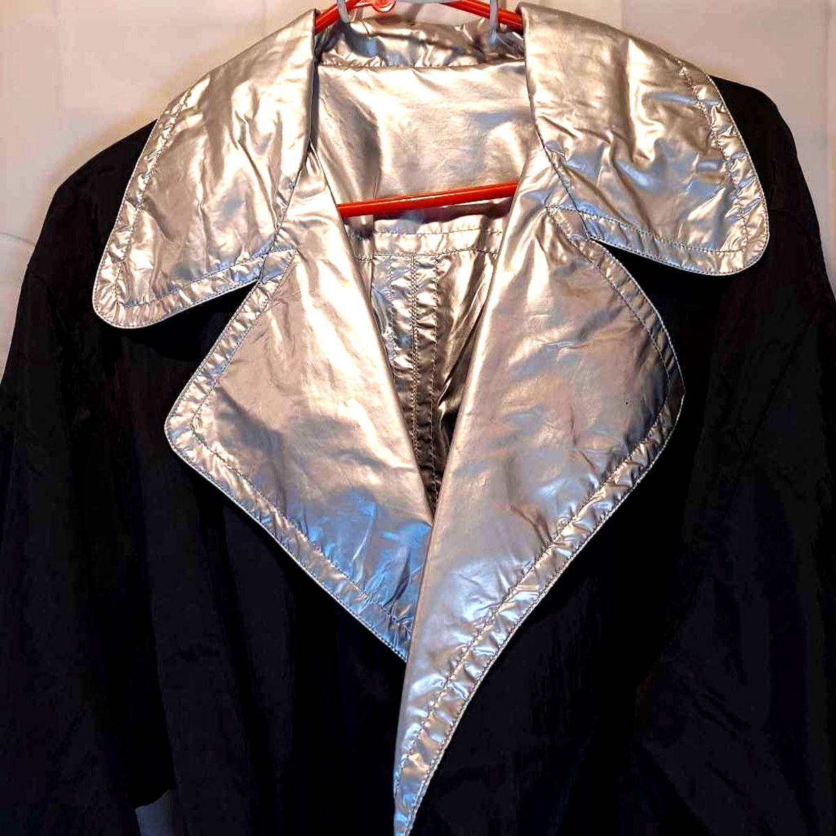 Unique Black Silver Metallic Reversible Raincoat