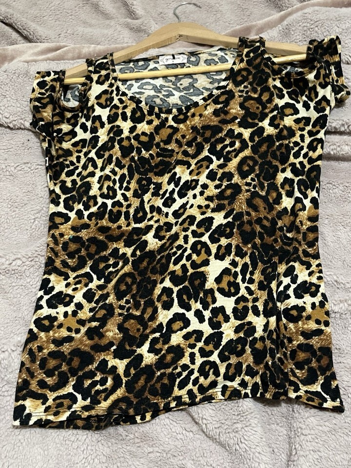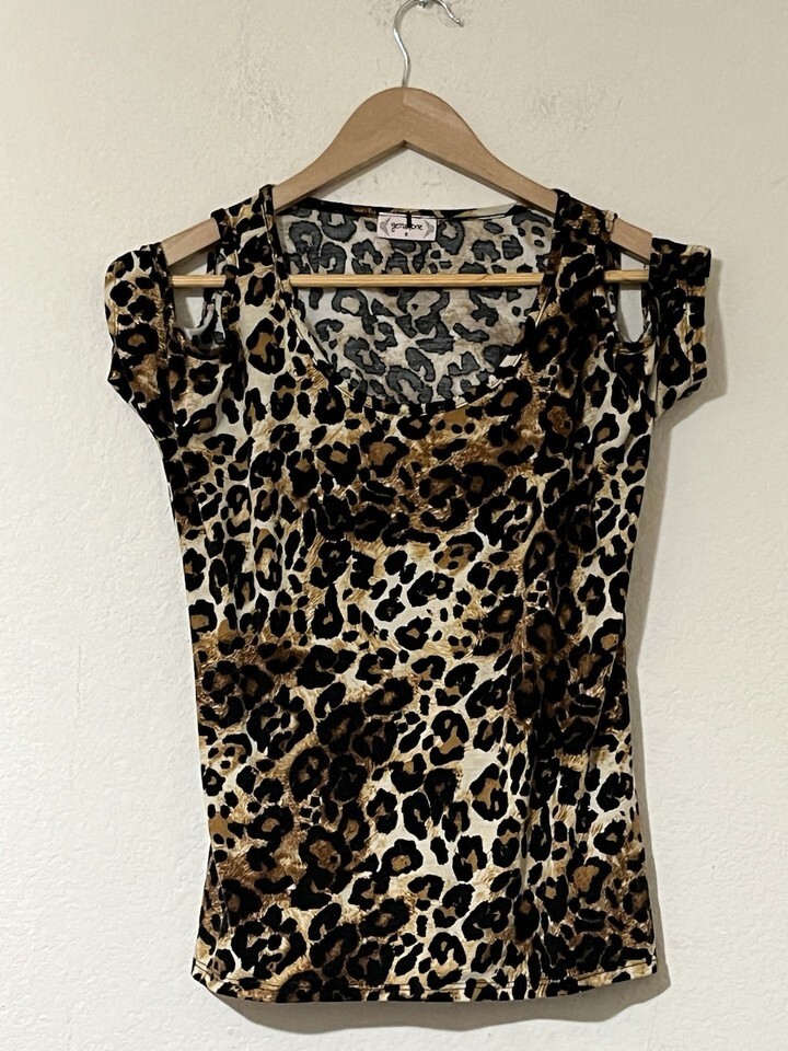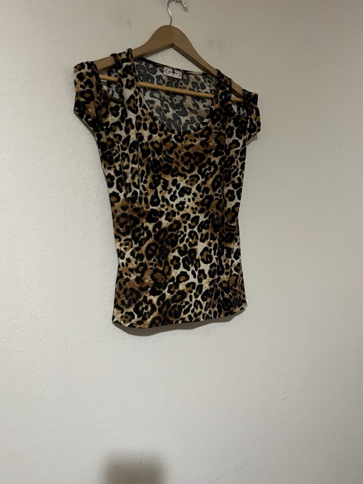 Gemstone Brand Leopard Print Cold Shoulder Shirt Women’s Small