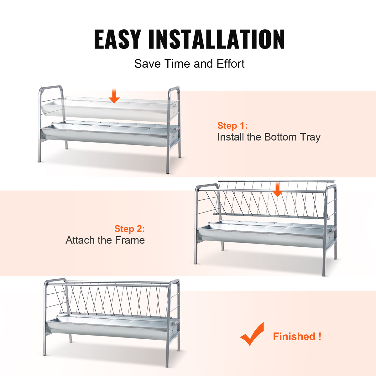 High-Strength Material: Made of high-quality Q235 carbon steel pipe and galvanized steel plate, this livestock hay feeder is rust and corrosion-resistant. With full welding process, our goat hay feeder is sturdy and durable.