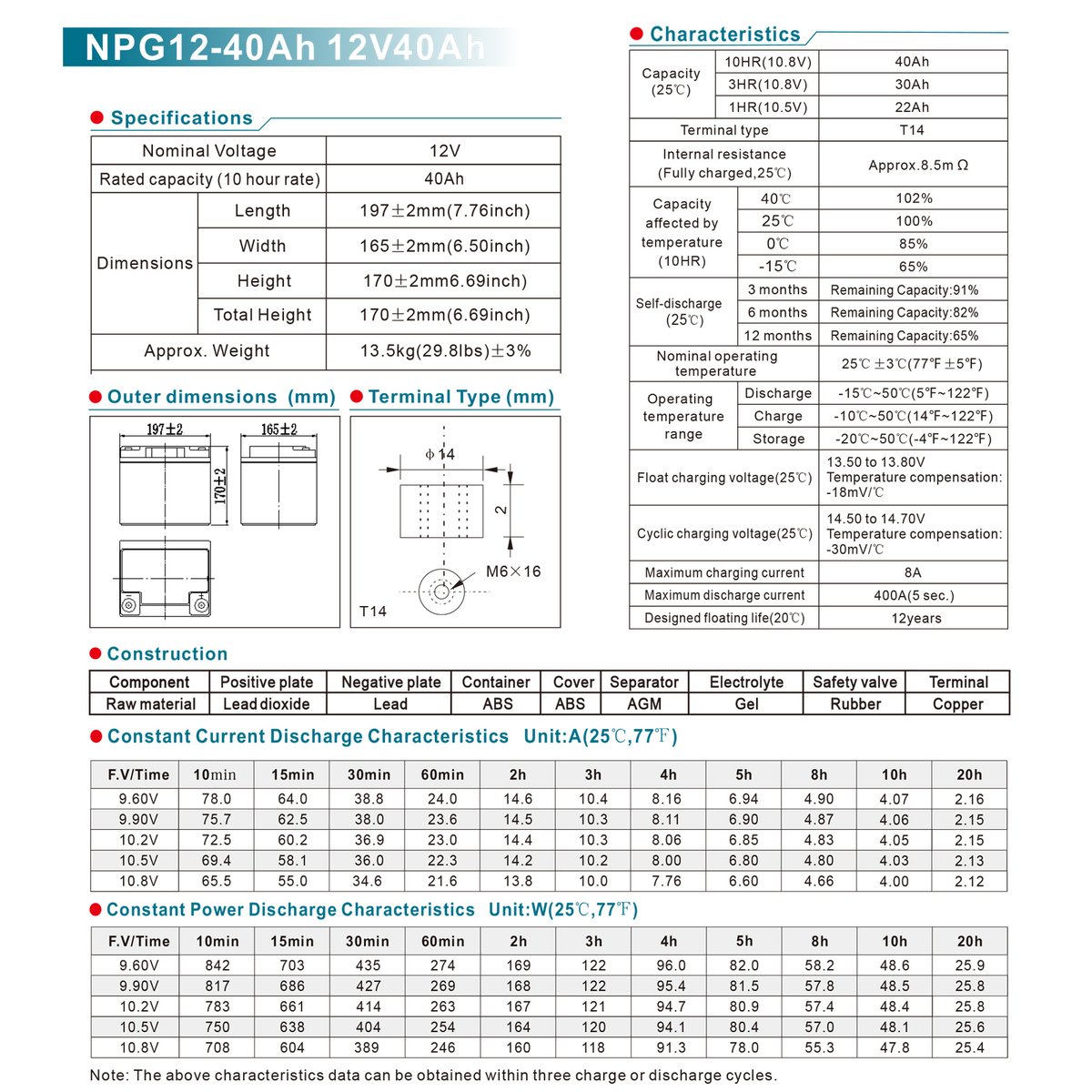 High Discharge Rate: Our AGM deep cycle battery boasts an impressive discharge rate of up to 10 times. With a maximum discharge current of 400A within 5 seconds, it provides stable discharge performance, supporting the startup of electric devices. Additionally, it excels in high-temperature resistance, compact size, and minimal self-discharge.