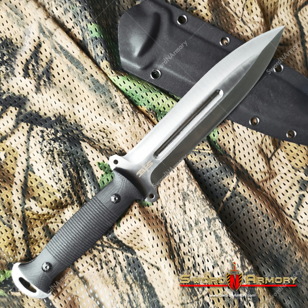 This is the S-TEC 12" Tactical Combat Knife featuring a G10 Handle and a 7" Fixed Blade with Kydex Sheath. It is a tough heavy duty tactical combat knife with a modern design and high-quality workmanship.