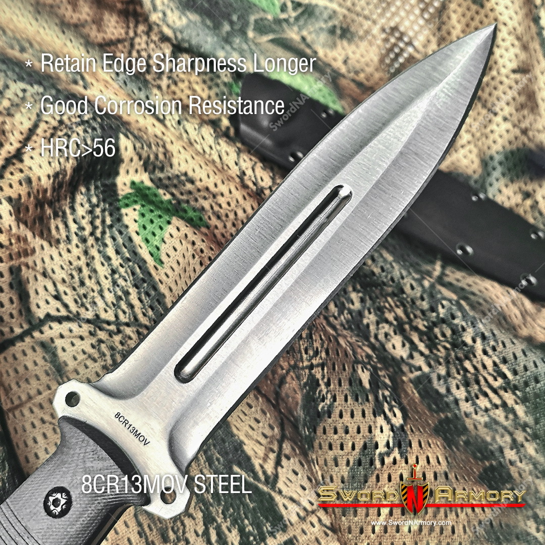 12" Tactical Combat Knife 8CR13MOV Steel Fixed Blade G10 Handle Kydex Sheath