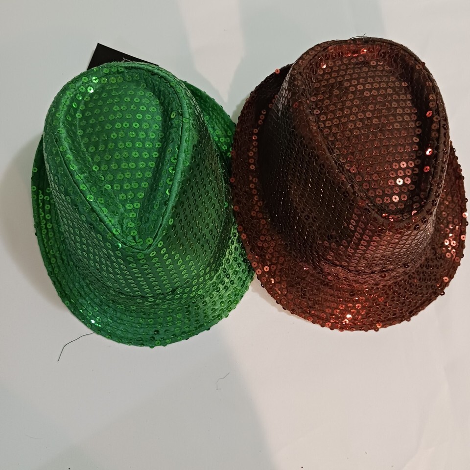 Classic SEQUIN Trilby FEDORA Novelty Costume HAT Brown/Green 2-Piece Color Set