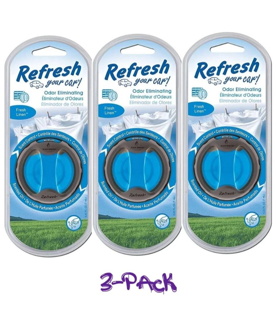 3PK Refresh Your Car Air Freshener Scented Oil Diffuser Fresh Linen Scent 0.23oz