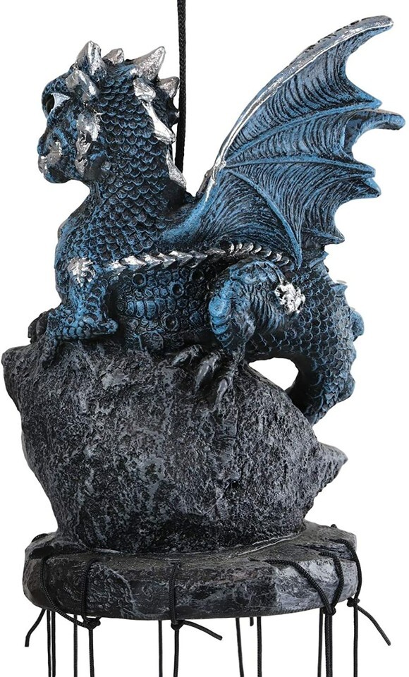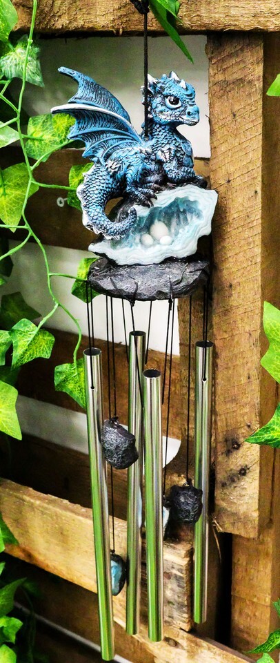 Ebros Blue Dragon Guarding Crystal Crown Top Resonant Wind Chime with Ornaments