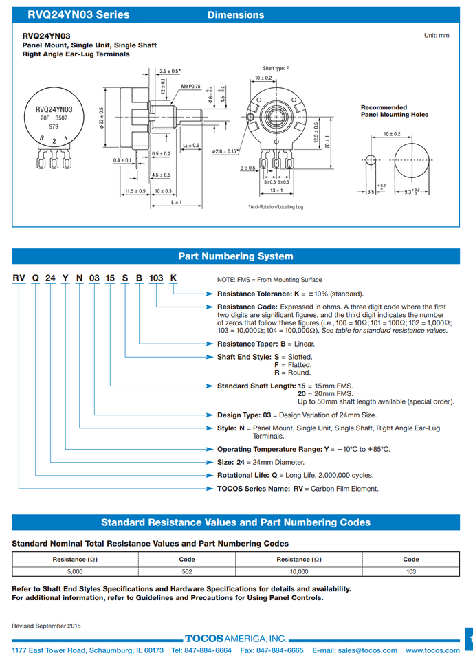 RVQ24YN03-8A 20S B502 Tocos 5K Ohm Linear and similar items