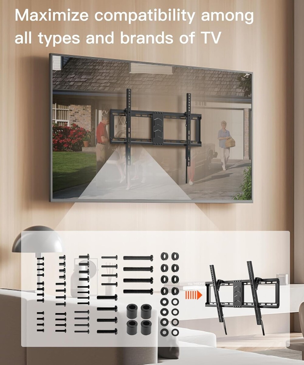 All in One Pack:Pack contains a variety of M4, M5, M6, M8 screws, washers and spacers for mounting virtually all TV's up to 80". In case of missing pieces or other problems, we have professionals ready to help. Please buy with confidence