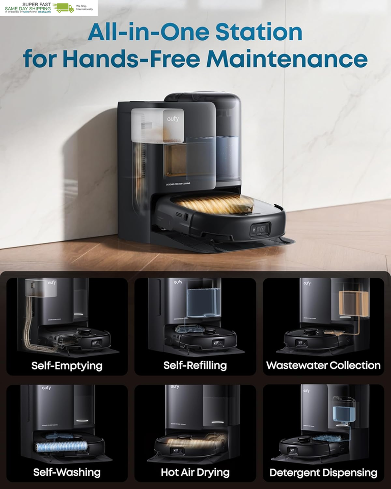 Auto Mop Washing, Obstacle Avoidance, Self-Emptying, Self-Refilling