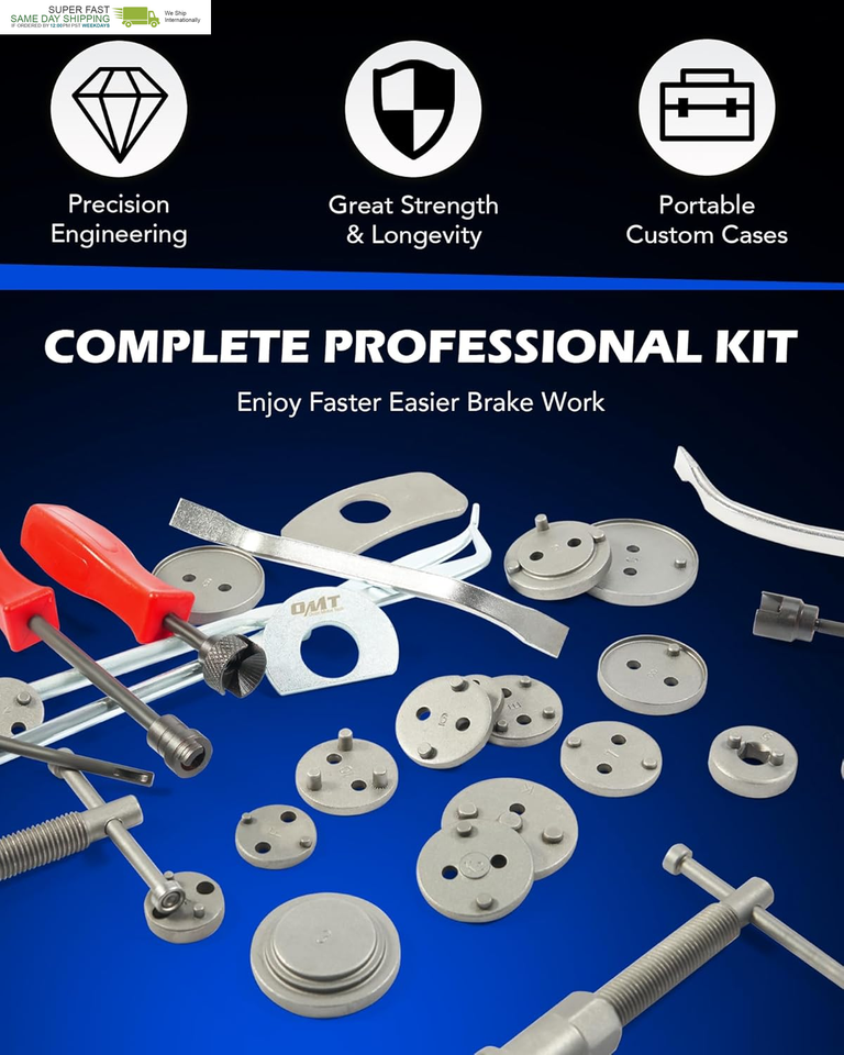 Designed to fit almost all vehicles, this complete brake tool kit provides superior performance and dependable quality, letting you rotate pistons back into their calipers without causing damage or scratches.