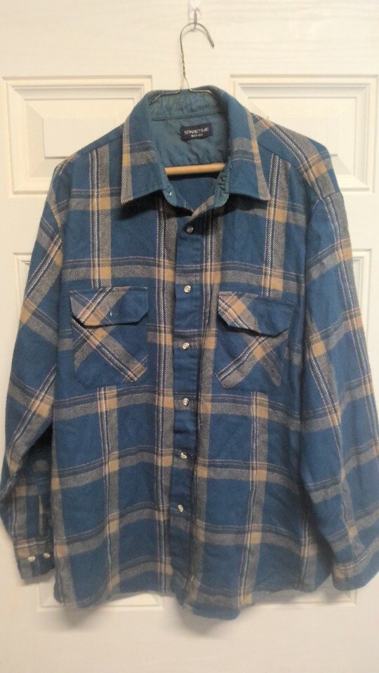 Vintage 90s Sparetime Flannel Shirt Blue Plaid Distressed Mens XLT