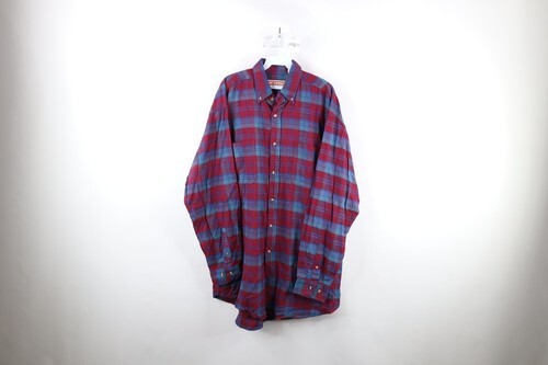 The Vintage 90s Sparetime Flannel Shirt in blue plaid is a stylish and versatile piece perfect for travel, casual outings, or workwear. Made from a blend of polyester and cotton, this flannel shirt features a collared neckline, long sleeves, and button closure. With a regular fit and XLT size, this shirt is comfortable for big and tall individuals. The shirt also includes accents like pockets and is machine washable for easy care. Whether it's winter, fall, or spring, this button-up shirt is a classic addition to any wardrobe with its 90s theme and distressed look.