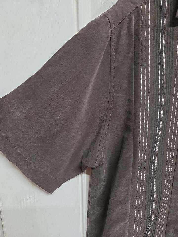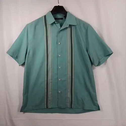 The Axist Men's Large Short Sleeve Black Shirt with Front White Stripes Vintage is a stylish and versatile addition to any man's wardrobe. Made from a blend of polyester and modal, this button-up shirt features a collared neckline and short sleeves, perfect for a casual yet put-together look. The vintage design with front white stripes adds a unique touch to the classic black color, making it suitable for all seasons. With its regular fit, this shirt is machine washable for easy care and is sure to become a go-to staple for any man looking for a grunge-inspired look with a touch of 80s and 90s flair.