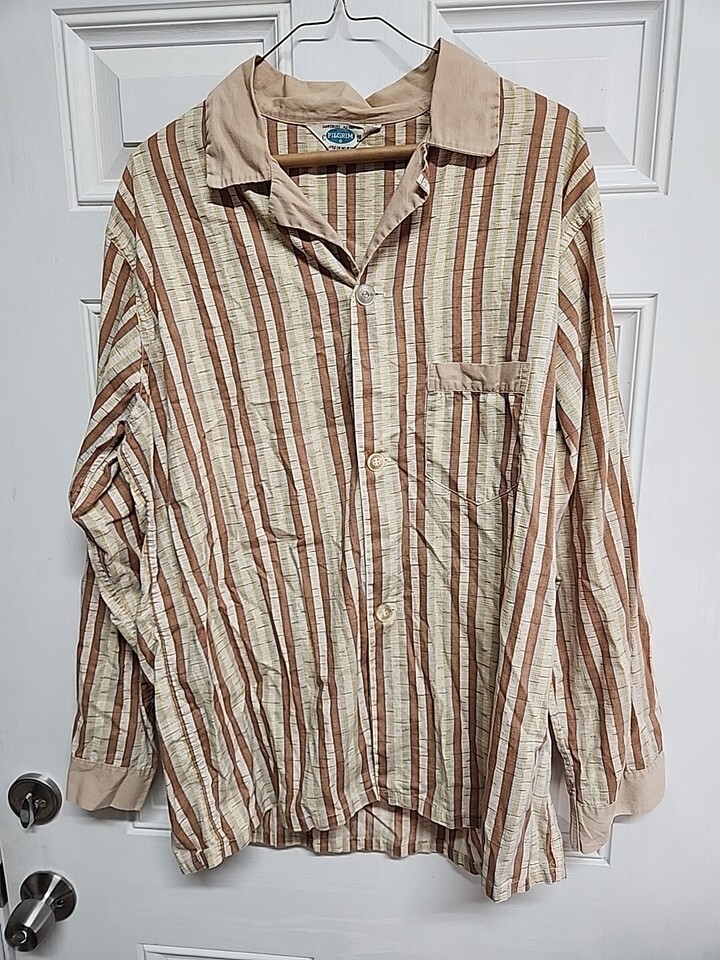 Vintage 50s Pilgrim Sears Sanforized Plaid Striped Button Up Shirt Sz 42/44 (A1)