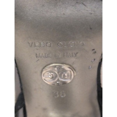 Dolce & Gabbana Black Velvet Strap Back Heels Vero Cuoio Italy 36