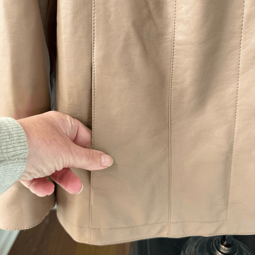 Dennis by Dennis Basso Faux Vegan Leather Blazer Jacket Lined Caramel Tan M