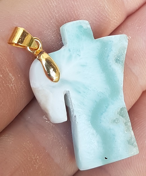 natural LARIMAR carved Gemstone cafetera pendant (wil-37)