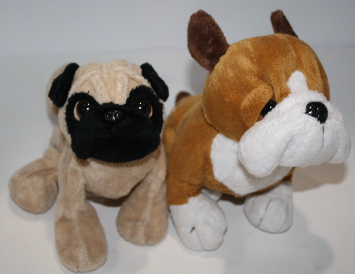 Webkinz, Pug Dog HM105 and Webkinz Bulldog HM126, Plush, Stuffed Animal, 8", Soft Toy HM105 HM126, Puppies, No Codes, GANZ