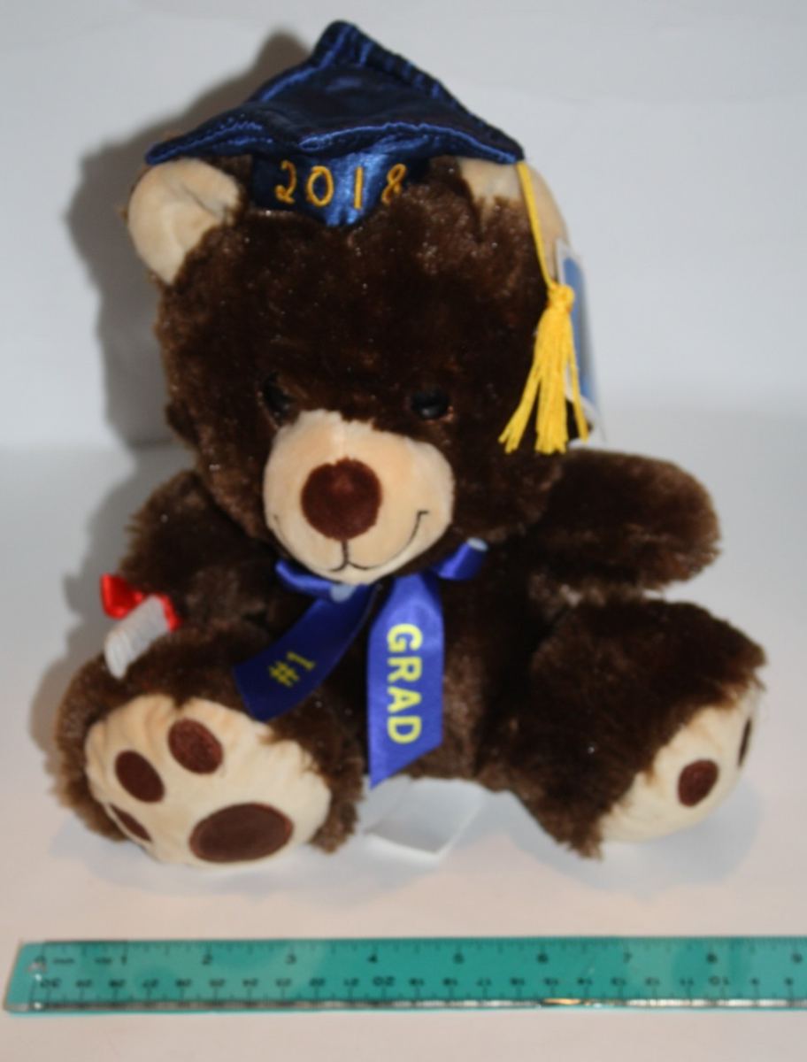 Hugfun Graduation 2018 Bear Plush Cap Diploma 9" # 1 Grad Bow Stuffed Soft Toy