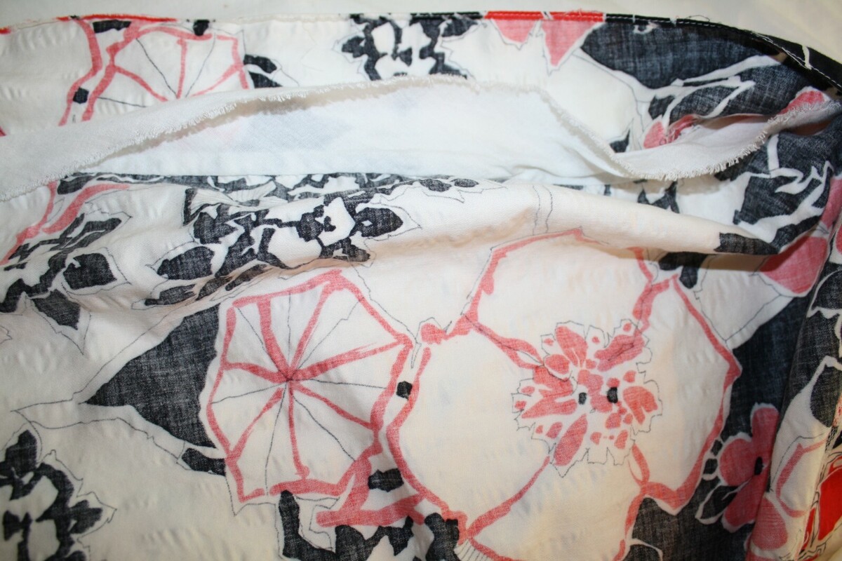 Condition: This Dress is Size 18, but runs by Vintage Sizing and RUNS SMALL. Dress is in Vintage Condition with some flaws. There is some dark fading on the white multi-colored material, the inner armholes show some fading of the material. There is 1 thin inner string, the hemline has some dark areas from normal wear. Smoke-free environment