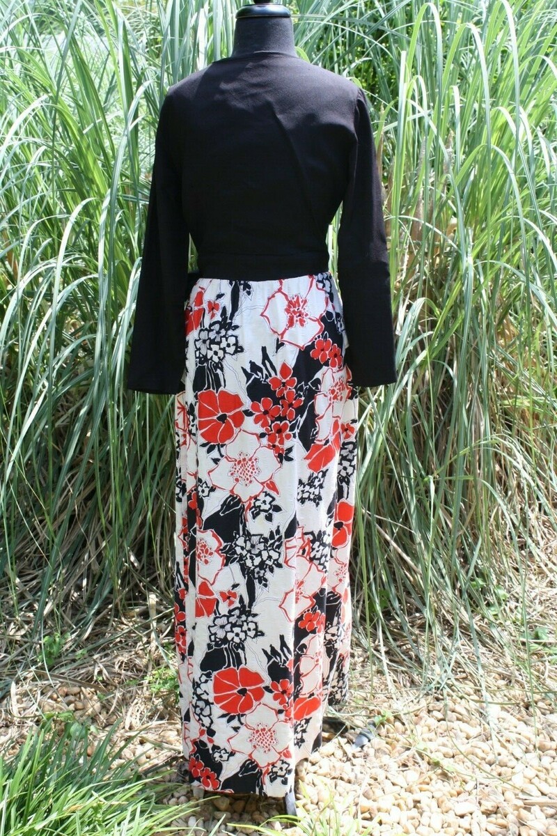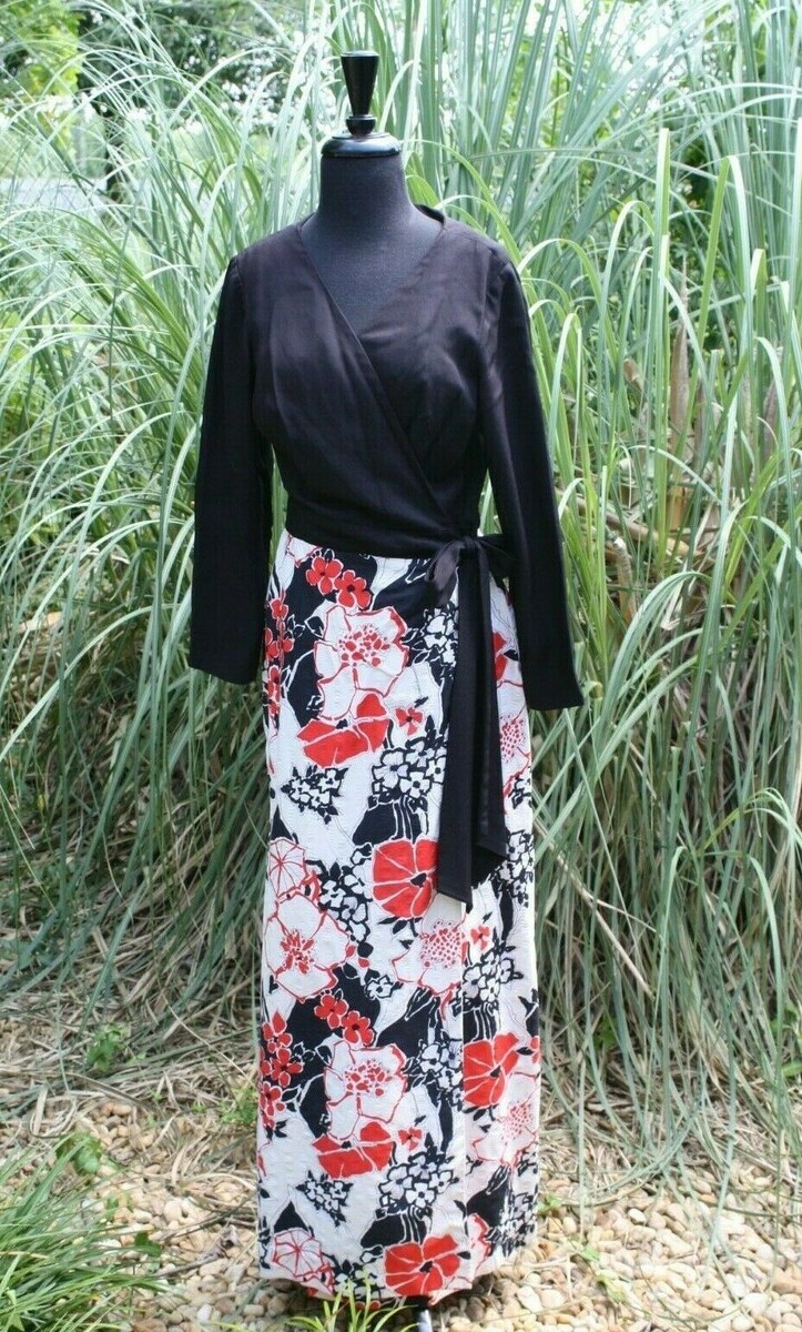 Lee Stevens of Miami, Misses, 18, Long Dress, Red Floral, Black, White, Wrap Tie Waist