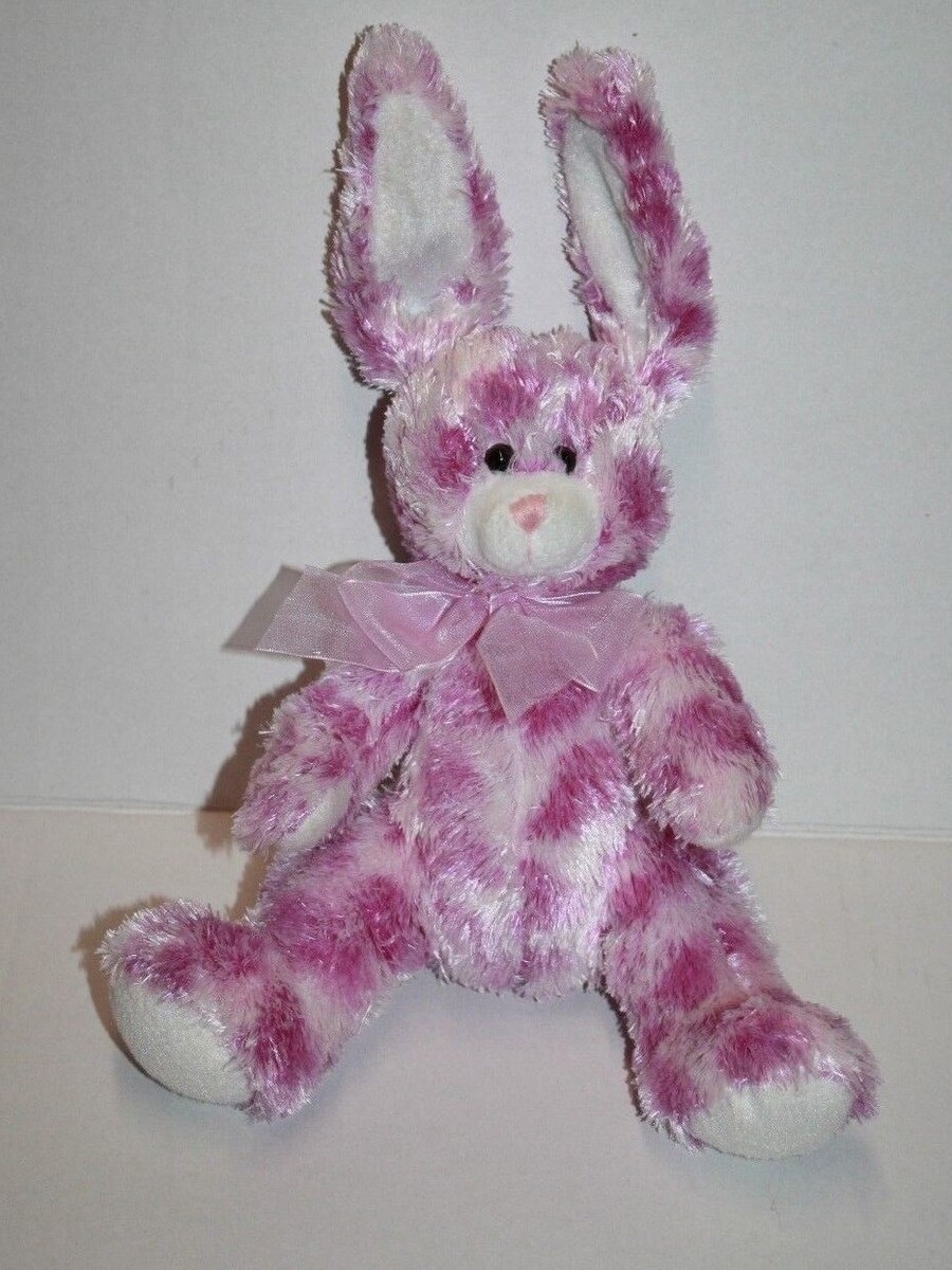 Fiesta Purple Tie Dye Easter Bunny Rabbit Long Ears 6" White Plush Bow Soft Toy