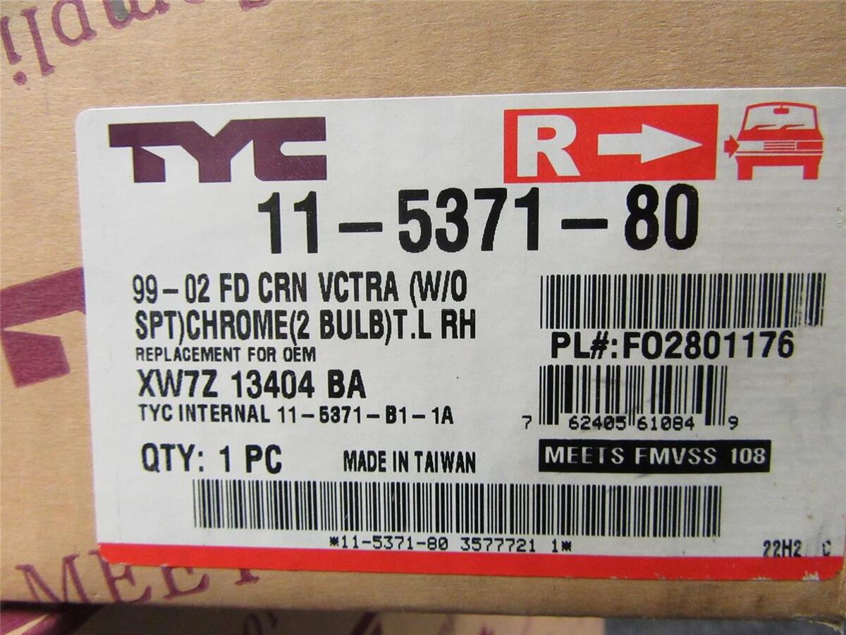 This ad is for a TYC 1999-2005 Ford Crown Victoria Tail Lamp. It is for the Passenger side (Right / RH). This is for models with two bulbs. Comes with everything you see in the photos.