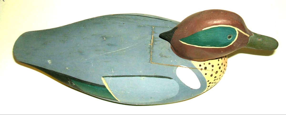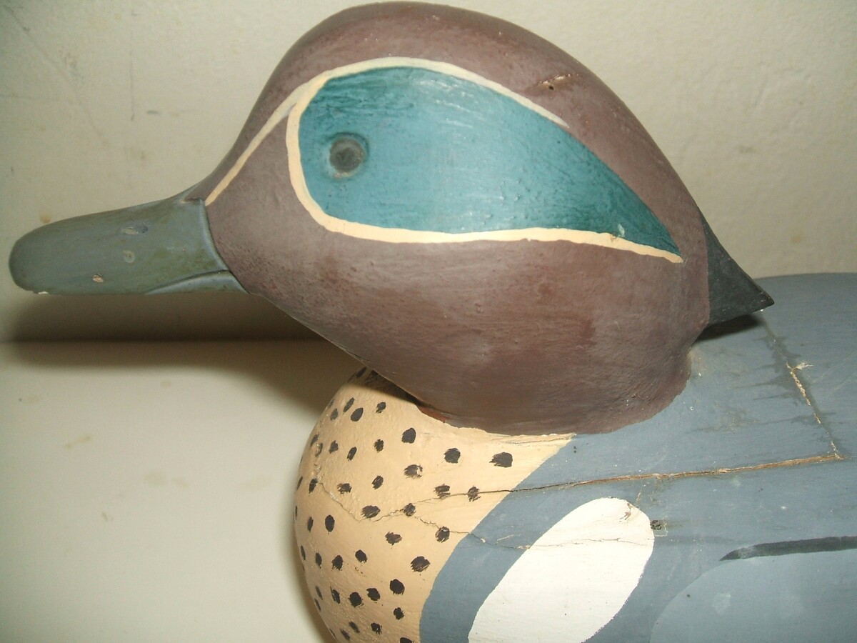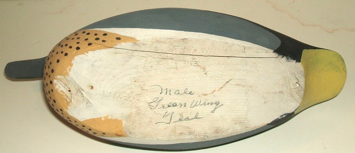 Folk art duck decoy Frank Dobbins Green Winged Teal vintage 1950s-1970s Maine