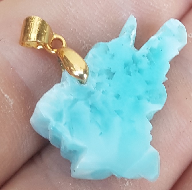 natural LARIMAR handcarved Gemstone dominican map pendant (jola-41)