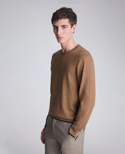 Kenneth Cole Men's Sweater Heather Brown Size 2XL Tipped Sleeve Crew Neck